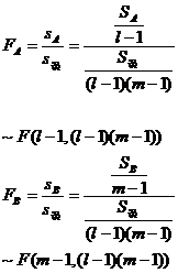 and represent the effect of factor A , the effect of B and the interaction of factors A and B , respectively, and![]()