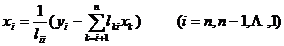 Substitute x n into the n -th equation, solve it , and then substitute x n into the n -th equation to solve , ... , and finally substitute the solved x 2 , x 3 , ... , x n into the first Solve the equations for x 1 .![]()