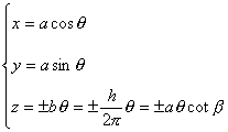 称为螺旋角,式中对右螺旋线取正号,对左螺旋线取负号,如果以弧长s为参数,其方程为