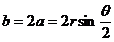 r is the radius , b is the chord length , is the degree of the central angle corresponding to the arc s , which is the number of radians , and O is the center of the circle