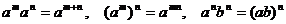 where m , n are any integers, a , b are any two elements in F , and only non-zero elements can have negative integer powers .