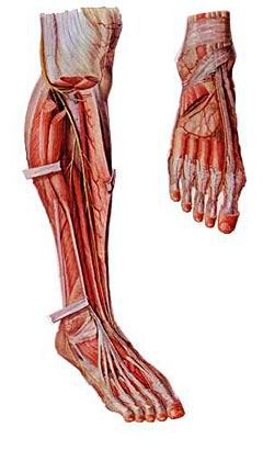 胫神经肌支支配小腿后群肌、足底肌。皮支布于膝关节、小腿后面皮肤、足底皮肤。胫神经损伤后表现为足“勾状外翻”。
