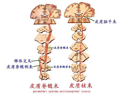 胞体位于中央前回,其纤维组成皮质脊髓束,经内囊后脚下行至延髓形成锥体,大部分纤维交叉后形成皮质脊髓侧束,少部分未交叉纤维形成皮质脊髓前束。