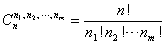 [多组组合]把n个不同的元素分成m组,第i组有ni个不同的元素,即,这样分组的种数为