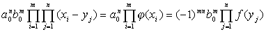 行列式R(f,j)是f(x)与j(x)的系数的一个m+n次齐次多项式,关于a0,a1,L,am是n次齐次多项式,关于b0,b1,L ,bn是m次齐次多项式.