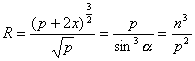 式中a为点M(x, y)的切线与主轴的夹角,n为法线MN之长.特别,顶点的曲率半径R0 = p |