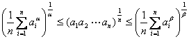[詹生不等式] 设ai>0 (i=1, 2, L, n),且0<r£s,则