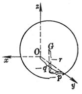 [球面的切面与法线] 设一平面P通过球面上一点M且垂直于半径GM,则称P为球面在M的切面.直线MG称为球面在点M的法线.