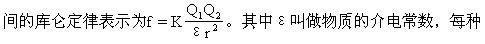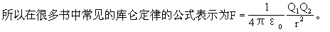 式中F的单位是牛顿,Q的单位是库仑,r的单位是米,这时比例系数K等于9×109牛顿·米2/库仑2。为了简化电学中许多常用公式,往往将