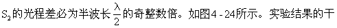 这里K=0相应于在O点处的中央明条纹。K=1,K=2,…等等相应的明条纹分别称为第一级、第二级、…明条纹。如果P点为暗点,按干涉条件,有