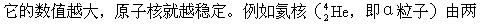 【平均结合能】将原子核的结合能除以核子数(即质量数A),即得每个核子的平均结合能。不同元素的原子核的稳定程度是不同的。我们可以用每个核子的平均结合能来表示原子核的稳定程度,核子的平均结合能越大,原子核就越稳定。质量数中等的核,平均结合能近似相等,在8MeV左右,而最轻和最重的一些核(元素周期表上两端的原子核)平均结合能较小。由此可见,中等原子量的核最稳定。在重核裂变或轻核聚变时,都相当于平均结合能较小的核转变为平均结合能较大的核,因而能释放能量。