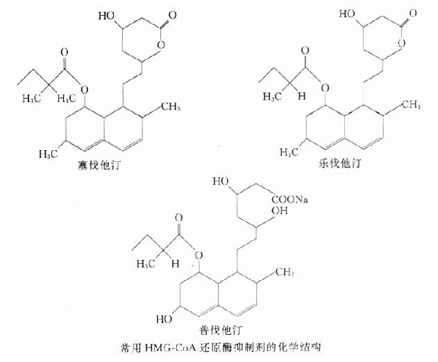 HMG-CoA(3-羟基-3-甲基戊二酰辅酶A,3-hydroxy-3-methylglutaryl-coenzyme A)还原酶抑制剂最早是从霉菌培养液中提取,有美伐他汀(mevastatin)、乐伐他汀(lovastatin)、以后又有美伐他汀的羟基化、甲基化衍生物普伐他汀(pravastatin)、塞伐他汀(simvastatin)。美伐他汀药效弱而不良反应多,未用于临床。