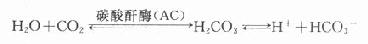 Na+在近曲小管的转运可分成二相,Na+通过腔膜侧进入胞内;再通过基底膜离开细胞,后者由钠泵(K+、Na+、-ATPase)所驱动,此外,Na+在近端管可通过Na+-H+反向转运系统(antiporter)与H+按1:1进行交换而进入细胞内。H+由小管细胞分泌到小管液中,并将小管液中的Na+换回到细胞内。H+的产生来自H2O与CO2所生成的H2CO3,这一反应需上皮细胞内碳酸酐酶的催化,然后H2CO3再解离成H+和HCO3-,H+将Na+换入细胞内,然后由Na+泵将Na+送至组织间液。