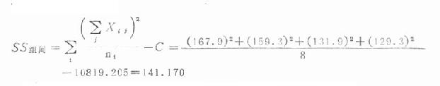SS组内=SS-SS组间=281.635-141.107=140.465