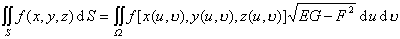 式中σ为曲面S在Oxy坐标面上的投影,z(x,y)为单值连续可微函数,函数f(x,y,z)在曲面S的各点上有定义并连续,则