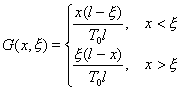 如果弦的两端固定在x轴上A,B两点,弦的张力为T0,则在点x外处施加的单位力作用下,弦成图15.1所示的形状。根据虎克(Hooke)定律与力的平衡条件,在点x处有
