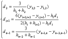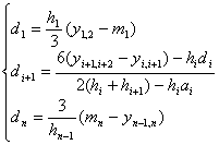 式中是待定参数。这样定义的函数S(x)在区间上满足三次样条函数的条件(i)和(ii),而且S(x)上有连续的一阶导数,同时