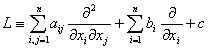 称为二阶线性微分算子,式中aij,bi,c为x1,x2,…,xn的二次连续可微函数.由公式