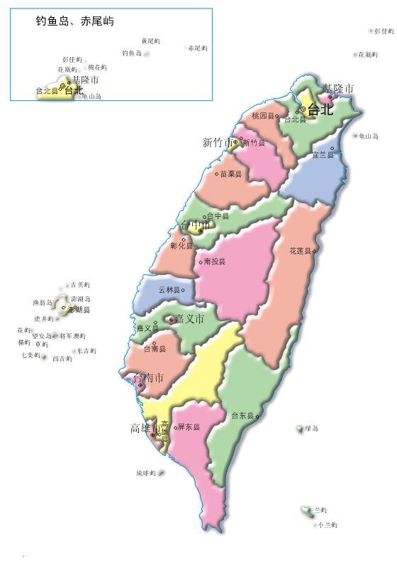 The Taiwan area 36,000 square kilometers, at present Taiwan including Taibei, Gaoxiong, Jilong, Hsinchu, Taichung, Jiayi, Tainan 7 municipalities, Taibei, Yilan, the peach garden, Hsinchu, Miaoli, Taichung, Zhanghua, Nantou, Yunlin, Jiayi, Tainan, Gaoxiong, Bingdong, Taitung, Hualian, Penghu altogether 16 counties, governs the city, 22 municipal districts, 60 towns and 225 townships including 24 counties.