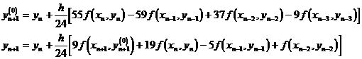 In this method, formula (1) uses the broken line method to provide the initial value, which is called the forecast formula . The formula (2) uses the trapezoidal method to give a more accurate value, which is called the correction formula . Collectively, it is called the forecast correction formula .
