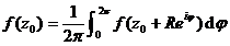 [ Average Theorem ] If the function is analyzed in a circle with a center and a radius , and is continuous on the circle, then the value of the function at the center of the circle is equal to the arithmetic mean of the values ​​on the circumference, that is,