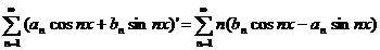 [ Item- wise differentiation ]   Assuming that the function is continuous on the interval , , and has absolutely integrable derivatives ( there may be a finite number of points without derivatives ) , then the Fourier series of the function can be obtained by the Fourier series of the item-wise differentiation , that is