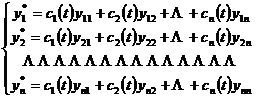 Let y 11 , y 21,, y n 1 ; y 12 , y 22 , , y n 2 ; ; y 1 n , y 2 n , , y nn be n of the corresponding system of homogeneous linear differential equations linearly independent solutions . Then a particular solution y 1 *, y 2 *, , y n * of the inhomogeneous system of linear equations can be determined by the following form