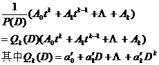 Divide P ( D ) ( arranged according to the ascending power of D ), remove 1 according to the general polynomial division rules , and obtain the quotient in the k + 1th step . When the k - th polynomial is obtained in the quotient , the division stops . Q k ( D ).