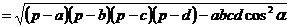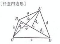 a, b, c, d are the lengths of the four sides , the two diagonals , and the angle between the two diagonals